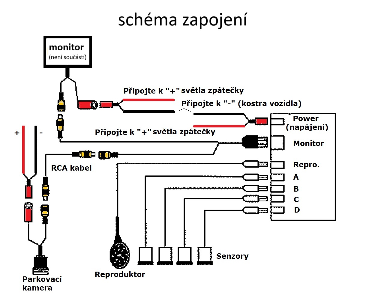 7. Automaticky funguje při couvání. Při správném zapojení se automaticky spustí při zařazení zpátečky.