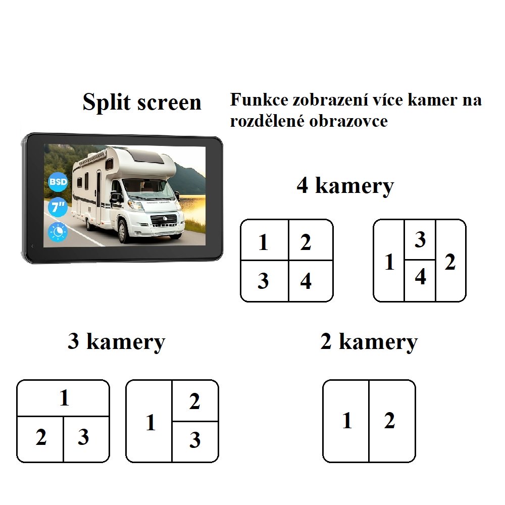 Wifi parkovací set TRUCK A3999, dotykový LCD 7" splitscreen, 2x solární kamera s magnetem - Cena: 6990 Kč