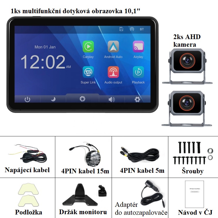 Parkovací set TRUCK A3679, 10,1" HD displej + 2x kamera - Cena: 5740 Kč