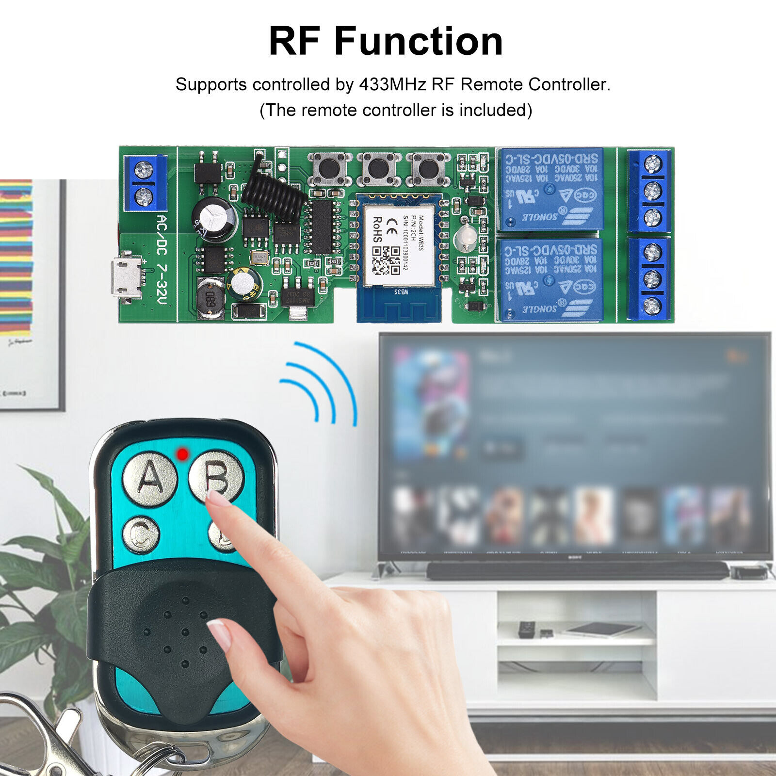Tuya Smart 2kanálový spínač Wi-Fi+RF 433Mhz přijímač 7-32V PST-TYWR-2CH+RF - Cena: 980 Kč