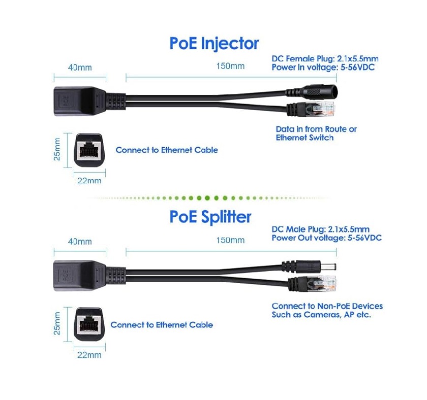 Pasivní PoE injektor + splitter kabel pro cctv kameru - Cena: 58 Kč