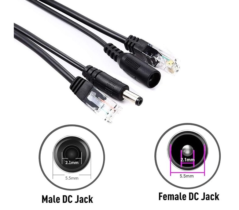 Sada PoE injektoru a splitteru s 5,5 mm x 2,1 mm DC jack / zástrčkou