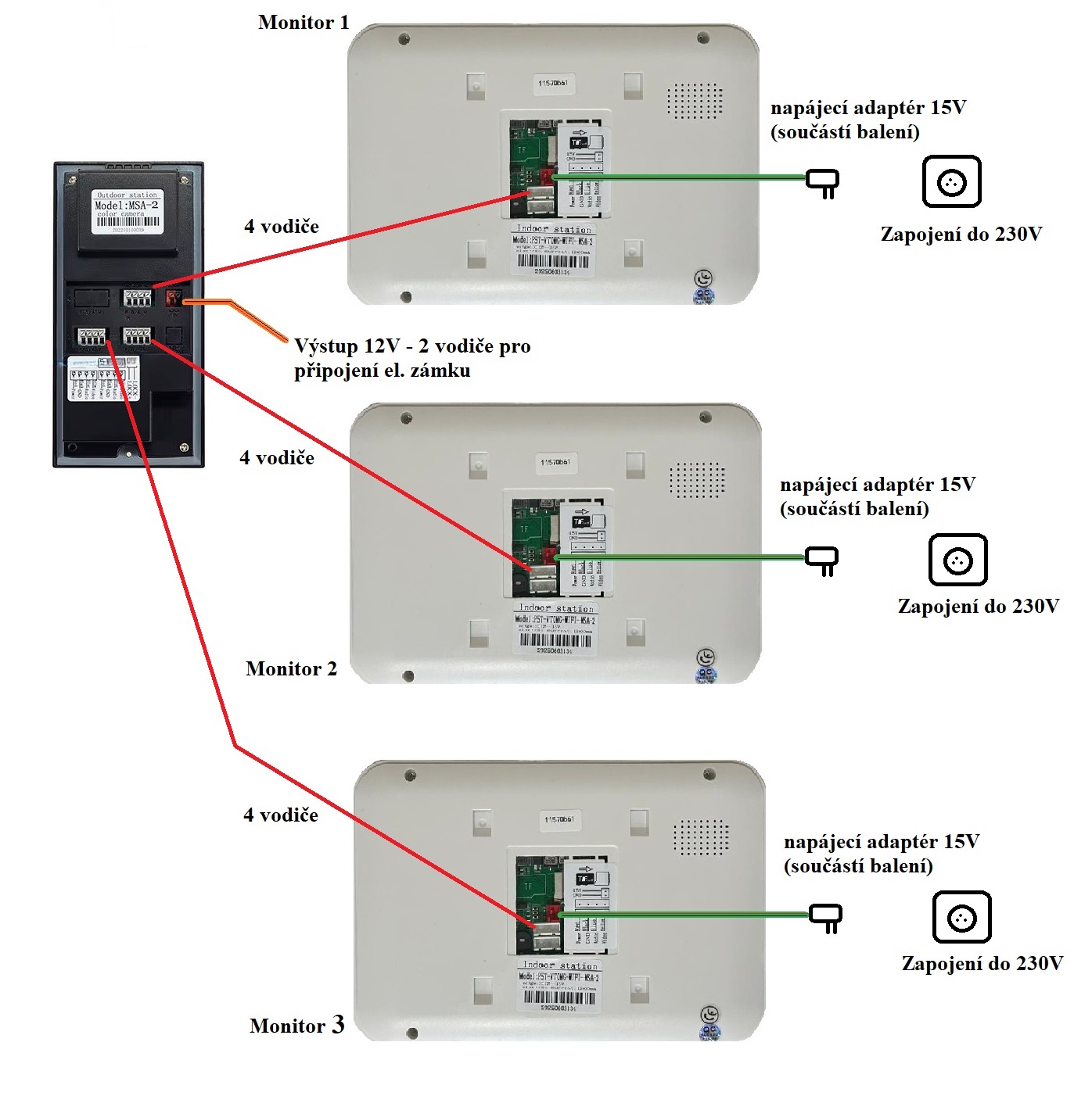 Externí zařízení: tato sada podporuje také zapojení přídavných zařízení, jako je elektrický zámek dodatečné