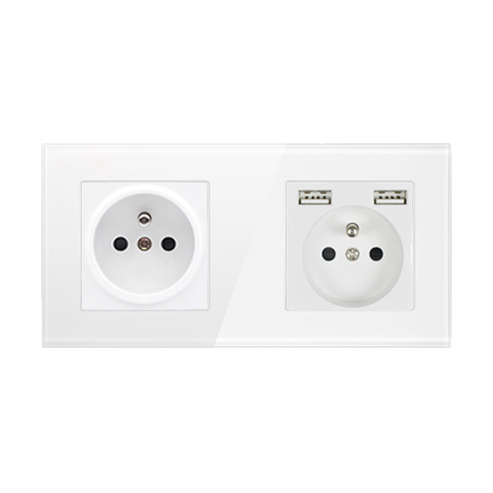 VOLNA SRAN Elektrická zásuvka 230V 16A + 230V+2*USB 5V/2,1A v rámečku 147mm, sklo bílý - Cena: 170 Kč