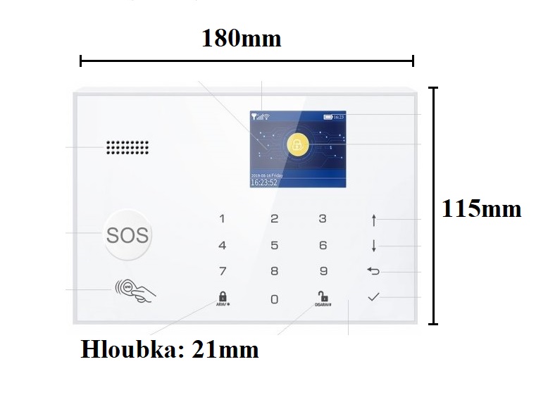 Základna je taktéž vybavena reproduktorem pro zvukový projev při alarmu. Externí siréna v tomto alarm systému je drátová, kterou připojíte přímo do základny alarmu. Další zařízení (PIR čidlo, dveřní/okenní čidlo) jsou již bezdrátové s vlastní baterií.