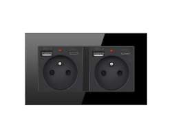 SRAN zásuvka 230v + 2xUSB5V + PIR vypínač se skleněným dvojrámečkem dvojrámečkem sklo černým