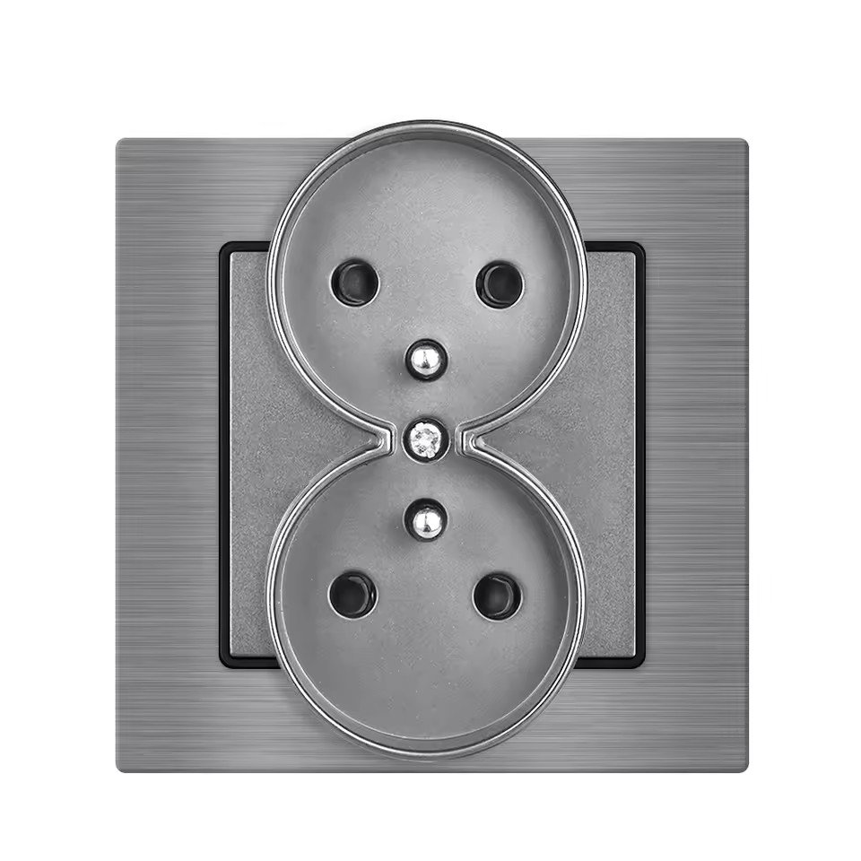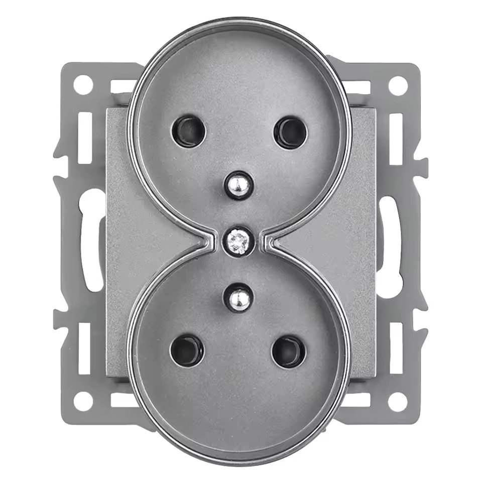 UNIC Elektrická dvojzásuvka 2x230V šedá v rámečku 82mm, slitina hliníku šedá - Cena: 177 Kč