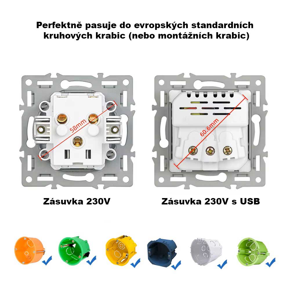 Kompletní zásuvka/dvojzásuvka UNIC v bílé/černé/šedé barvě je klasickou zásuvkou pro domovní i kancelářskou elektroinstalaci s montáží do standardní elektroinstalační krabice 68.